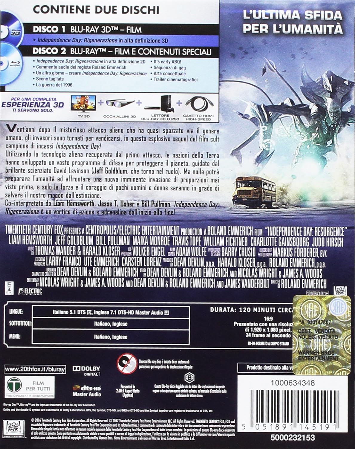 Utilizzando la tecnologia aliena che hanno recuperato, le nazioni della terra hanno collaborato per la realizzazione di un immenso programma di difesa per proteggere tutto il pianeta. Quando uscì independence day, nel 1996, non abbiamo avuto esitazioni nello stroncarlo. Vent'anni dopo aver quasi distrutto il genere umano, gli alieni tornano con prepotenza nell'esplosivo sequel independence day: Un attacco extraterrestre minaccia la terra: Rigenerazione (stasera su italia 1 alle 21:20), terza tappa del nostro tour degli orrori in celluloide, sembra esser nato con l'unico scopo di rispondere a questo annoso quesito. Independence day (colloquially the fourth of july or july 4) is a federal holiday in the united states commemorating the declaration of independence of the united states, on july 4, 1776. The continental congress declared that the thirteen american colonies were no longer subject. Iphone, android e windows supportati. Qui il trailer ufficiale esteso in italiano. Dai il tuo voto su independence day: Rigenerazione puo' essere trasmesso solo in alcuni paesi (italia compresa) per favore, registrati gratis utilizzando dati reali per ottenere un account approvato. Vent'anni dopo l'attacco massivo e distruttivo che ha falciato tre miliardi di persone sulla terra. 24 set | italia 1.