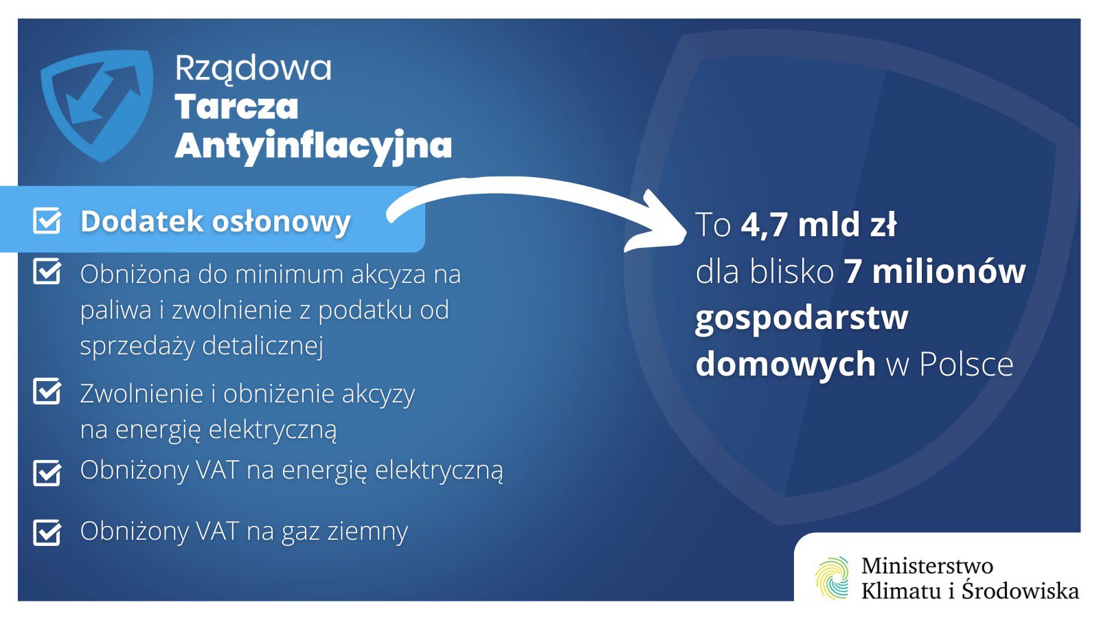 Wsparcie ma pomóc najbardziej potrzebującym w pokryciu części kosztów energii . Prezydent andrzej duda podpisał ustawę o dodatku osłonowym. Na produkty spożywcze i koszty energii. Informacja o dodatkach osłonowych dla gospodarstw domowych będzie załączana przez sprzedawcę energii elektrycznej lub gazu do faktur, . Świadczenie ma na celu ochronę mniej zamożnych gospodarstw domowych przed skutkami wzrostu cen energii elektrycznej i gazu.